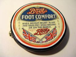 WW1 Reproductions and WW1 Reenactors Equipment / Kit - Boots Foot Comfort Tin label, 1915. |